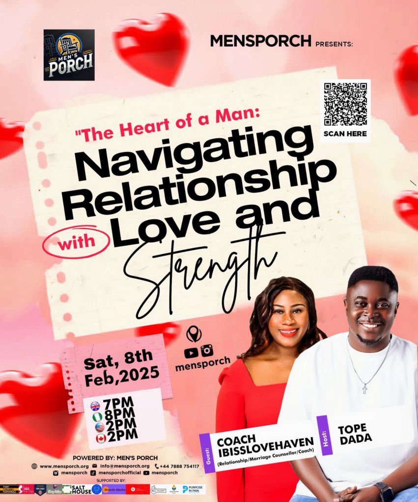Men’s Porch, a global platform dedicated to empowering men in areas of health, spirituality, marriage, fatherhood, and personal growth, is set to host an insightful virtual event titled “The Heart of a Man: Navigating Relationships with Love and Strength.”