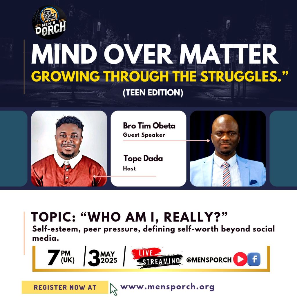 #MindOverMatter #MensPorch #TeenIdentity #SelfWorth #FaithOverFear